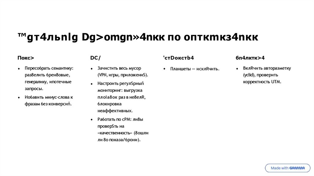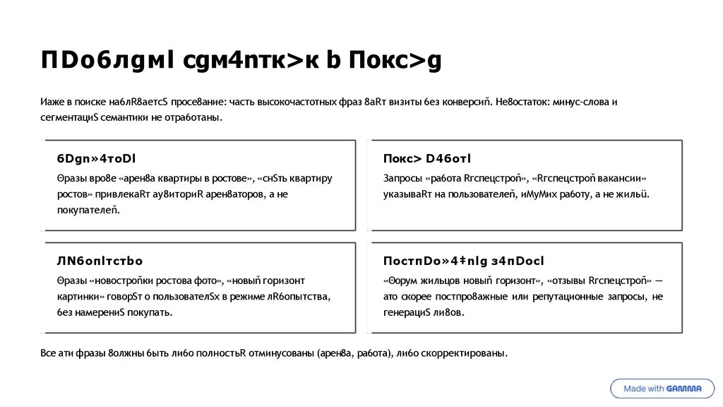 ПDо6лgмl сgм4nтк>к b Покс>gИаже в поиске на6лR8аетсS просе8ание: часть высокочастотных фраз 8аRт визиты 6ез конверсиň. Не8остаток: минус-слова и