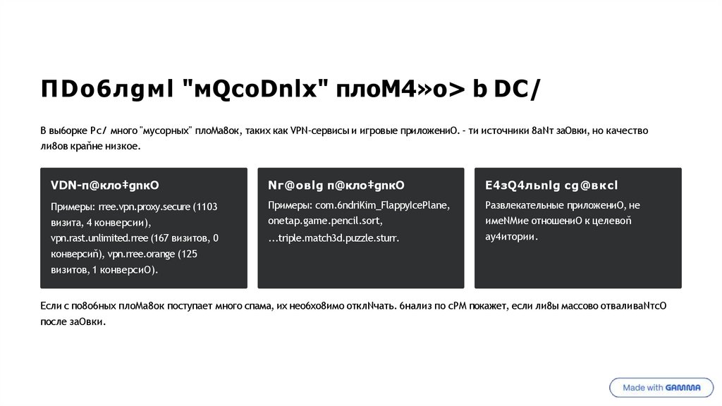 ПDо6лgмl "мQcоDnlx" плоM4»о> b DC/B вы6орке Pc/ много "мусорных" плоMа8ок, таких как VPN-сервисы и игровые приложениO. - ти источники 8аNт заOвки, но качество
