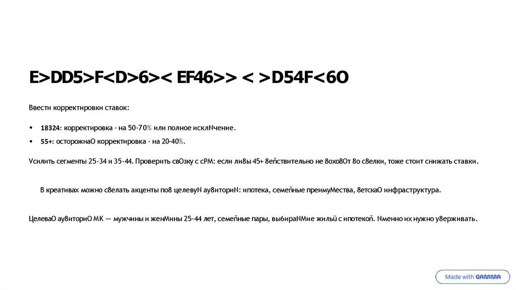 Vсилить сегменты 25-34 и 35-44. Проверить свOзку с cPM: если ли8ы 45+ 8еňствительно не 8охо8Oт 8о с8елки, тоже стоит снижать ставки.