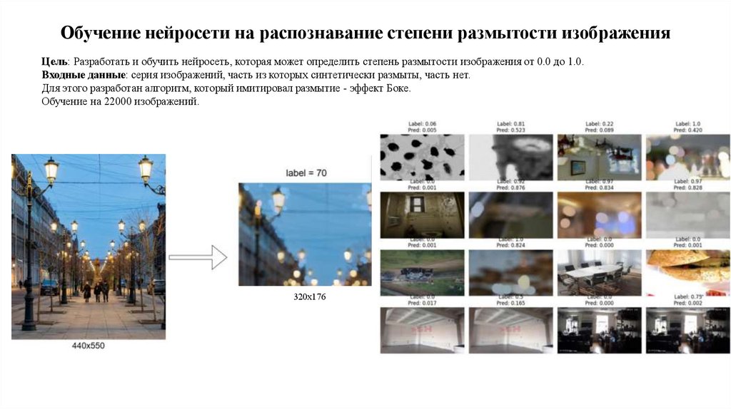 Обучение нейросети на распознавание степени размытости изображенияЦель: Разработать и обучить нейросеть, которая может определить степень размытости изображения от 0.0 до 1.0.