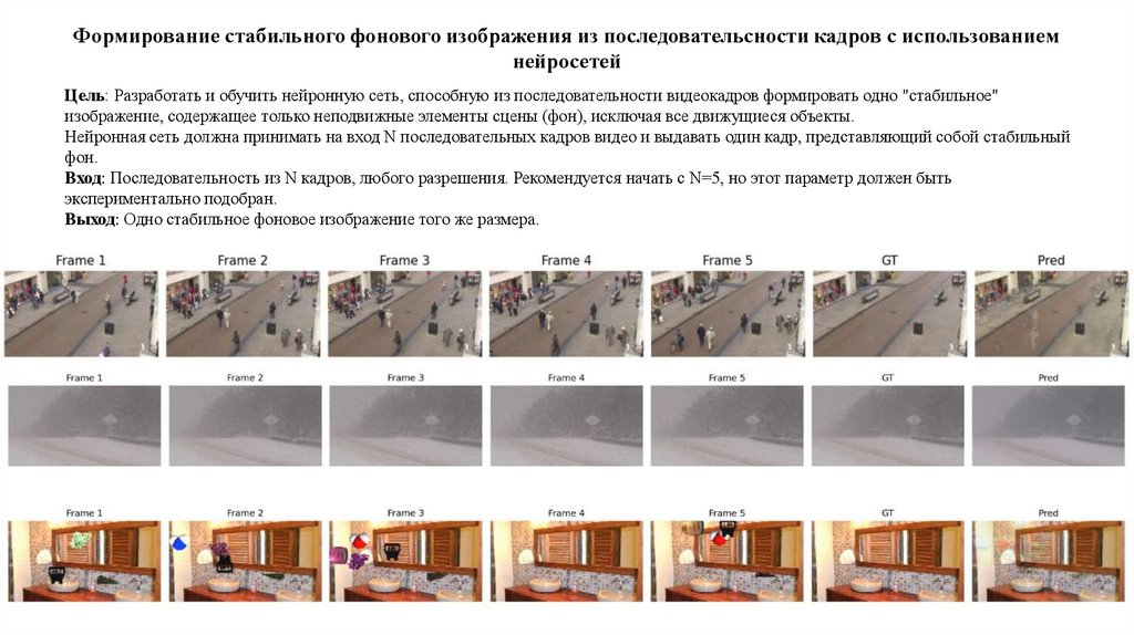 Цель: Разработать и обучить нейронную сеть, способную из последовательности видеокадров формировать одно "стабильное"
