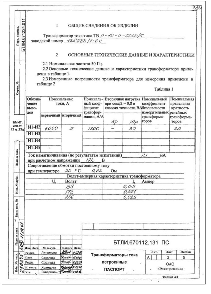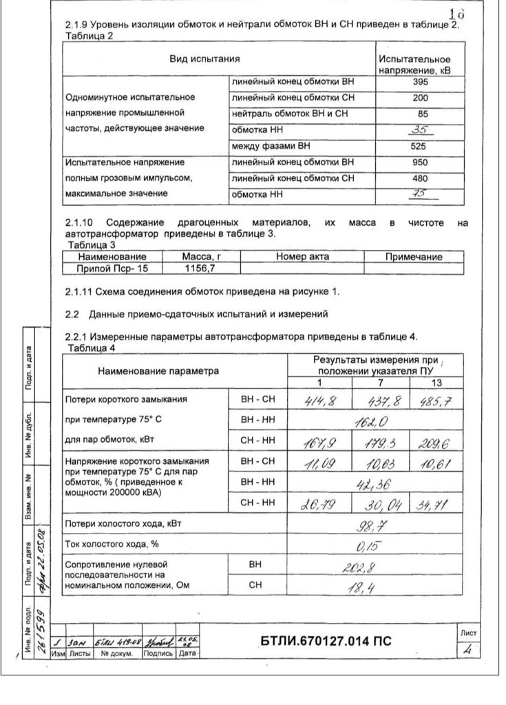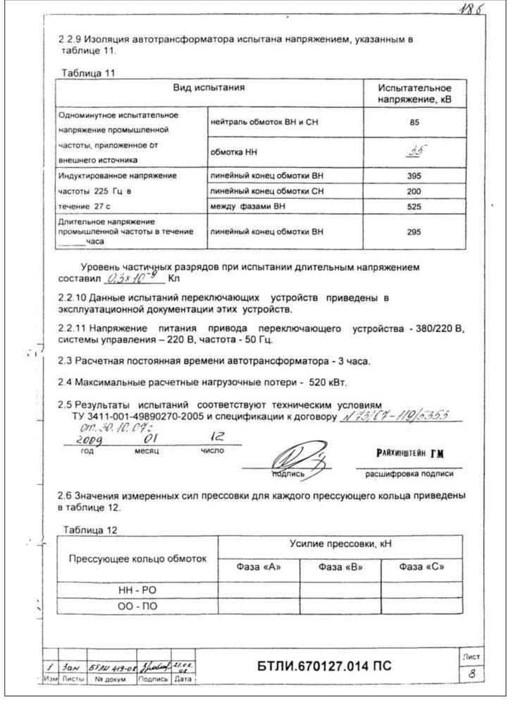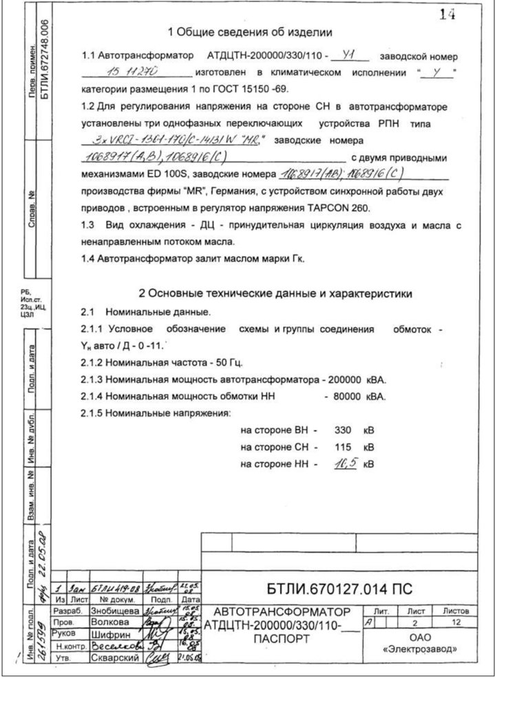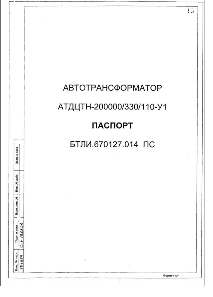 Автотрансформатор АТДЦТН-200000/330/110-У1. Паспорт