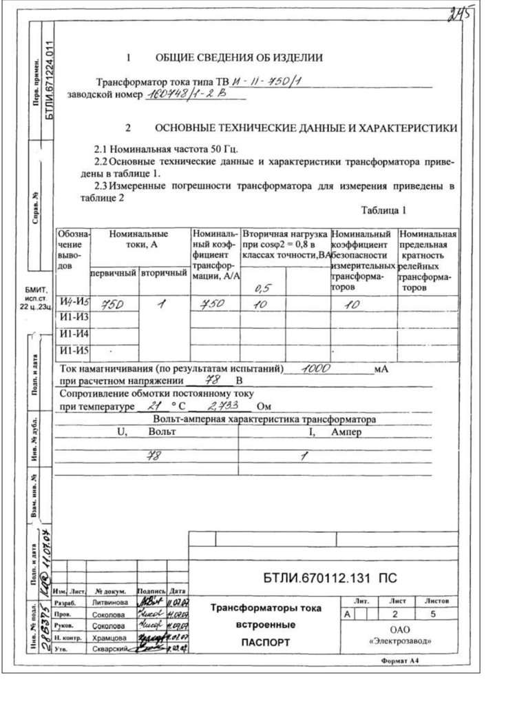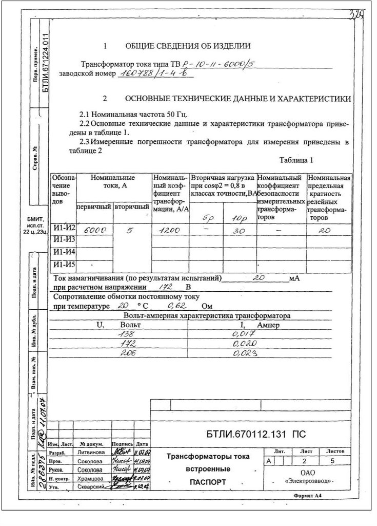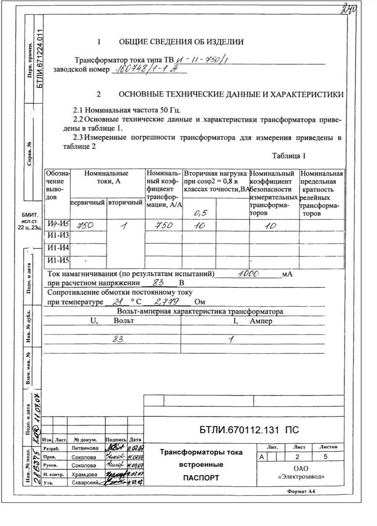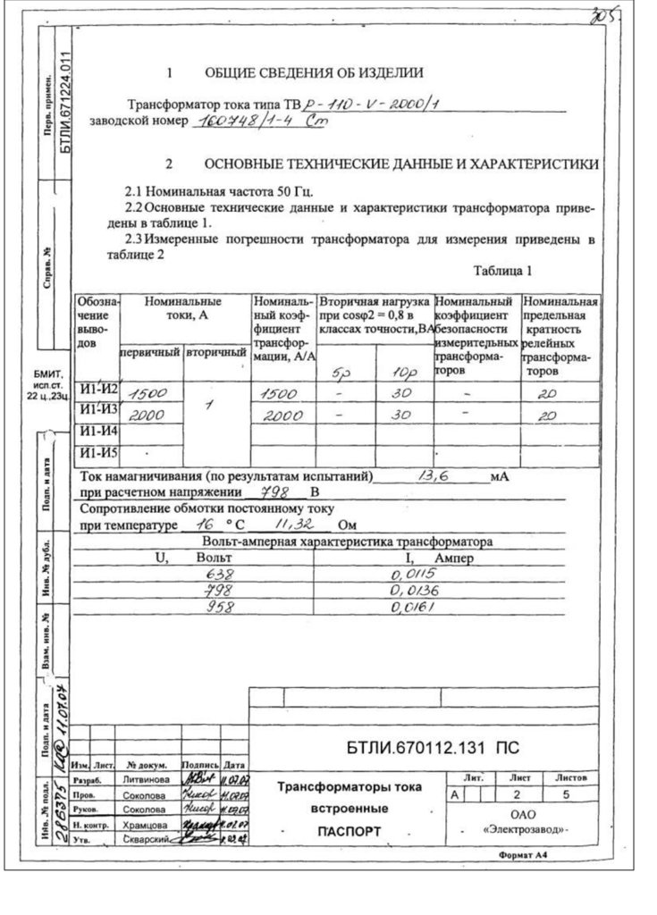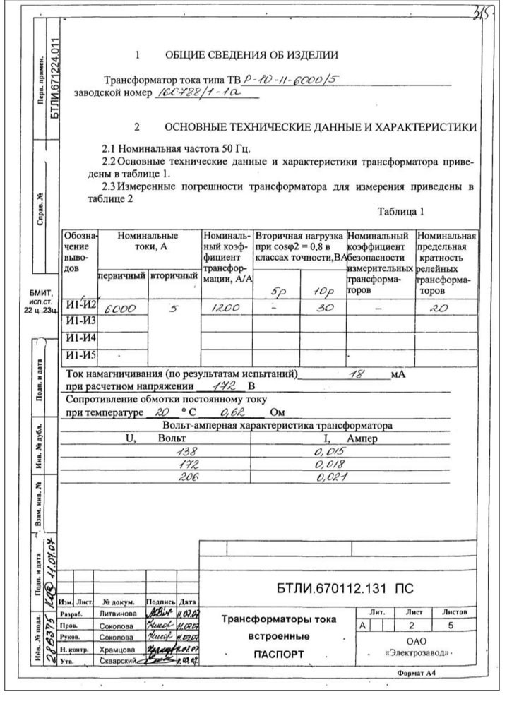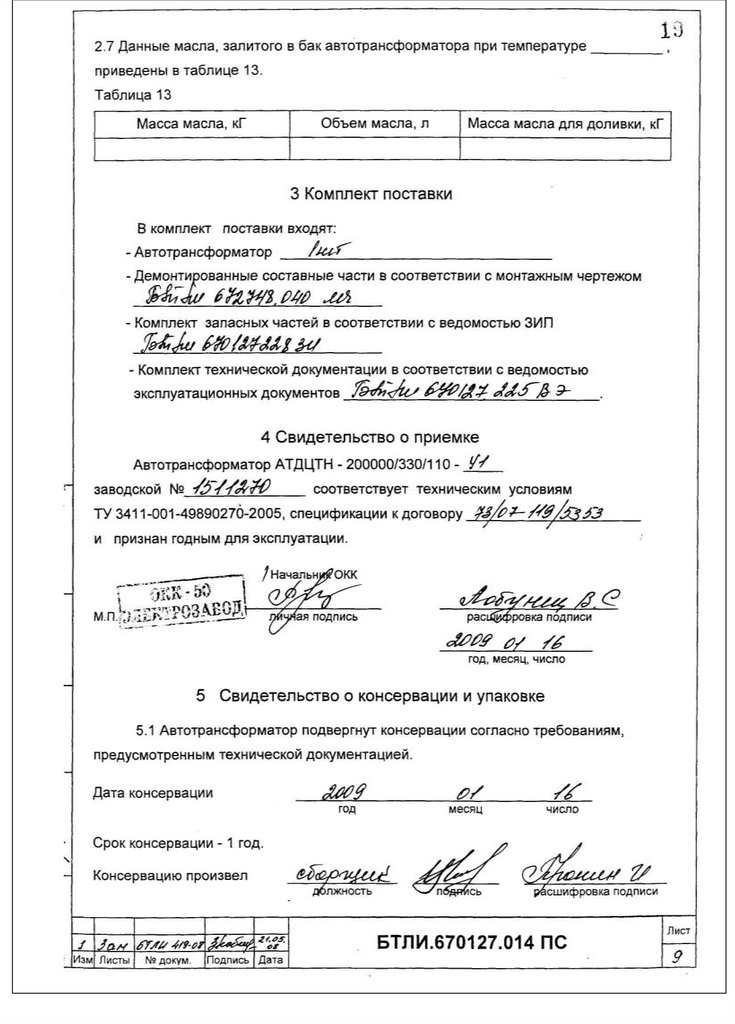Автотрансформатор АТДЦТН-200000/330/110-У1. Паспорт