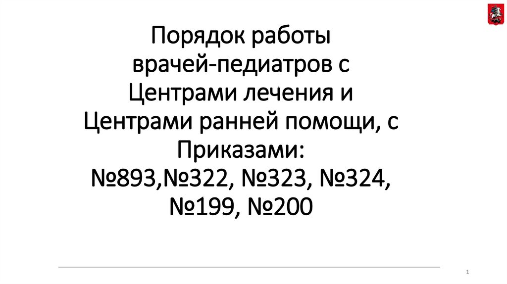 Порядок работы врачей-педиатров с Центрами лечения и Центрами ранней помощи, с Приказами: №893,№322, №323, №324, №199, №200