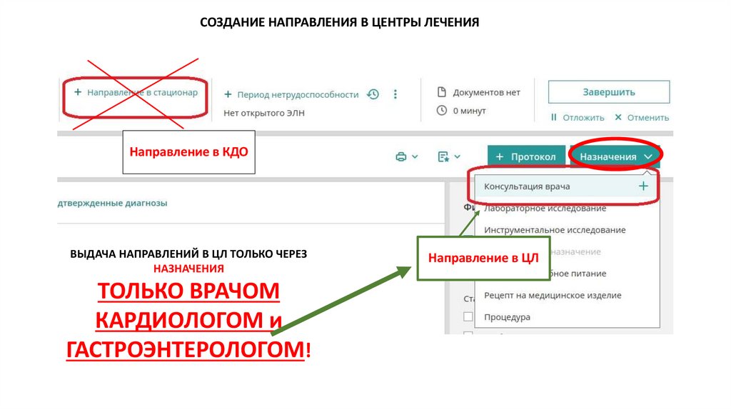 СОЗДАНИЕ НАПРАВЛЕНИЯ В ЦЕНТРЫ ЛЕЧЕНИЯНаправление в КДО