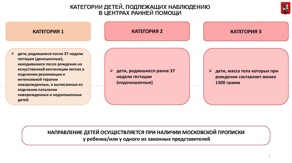 КАТЕГОРИИ ДЕТЕЙ, ПОДЛЕЖАЩИХ НАБЛЮДЕНИЮВ ЦЕНТРАХ РАННЕЙ ПОМОЩИ