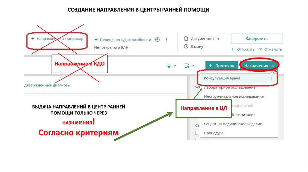 СОЗДАНИЕ НАПРАВЛЕНИЯ В ЦЕНТРЫ РАННЕЙ ПОМОЩИНаправление в КДО