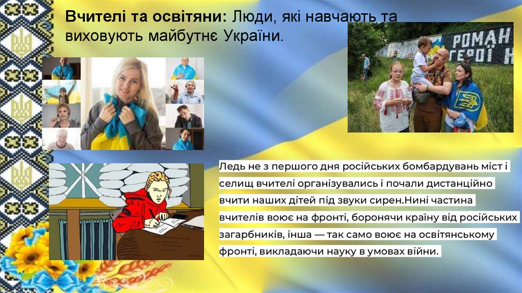Вчителі та освітяни: Люди, які навчають тавиховують майбутнє України.