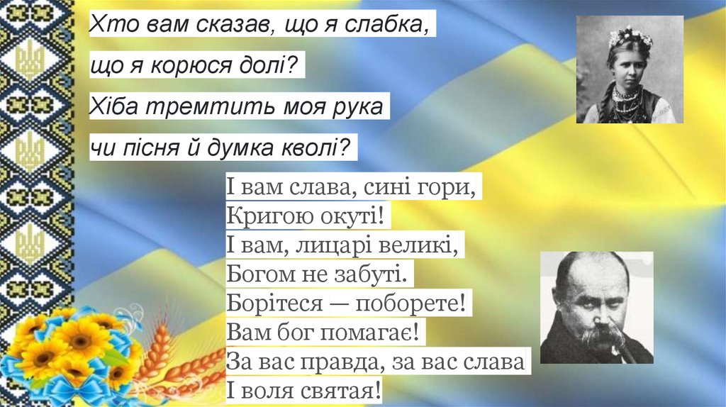 Хто вам сказав, що я слабка,що я корюся долі?