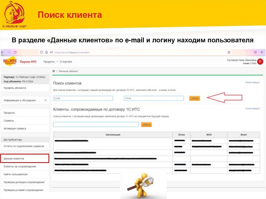 Поиск клиентаВ разделе «Данные клиентов» по e-mail и логину находим пользователя