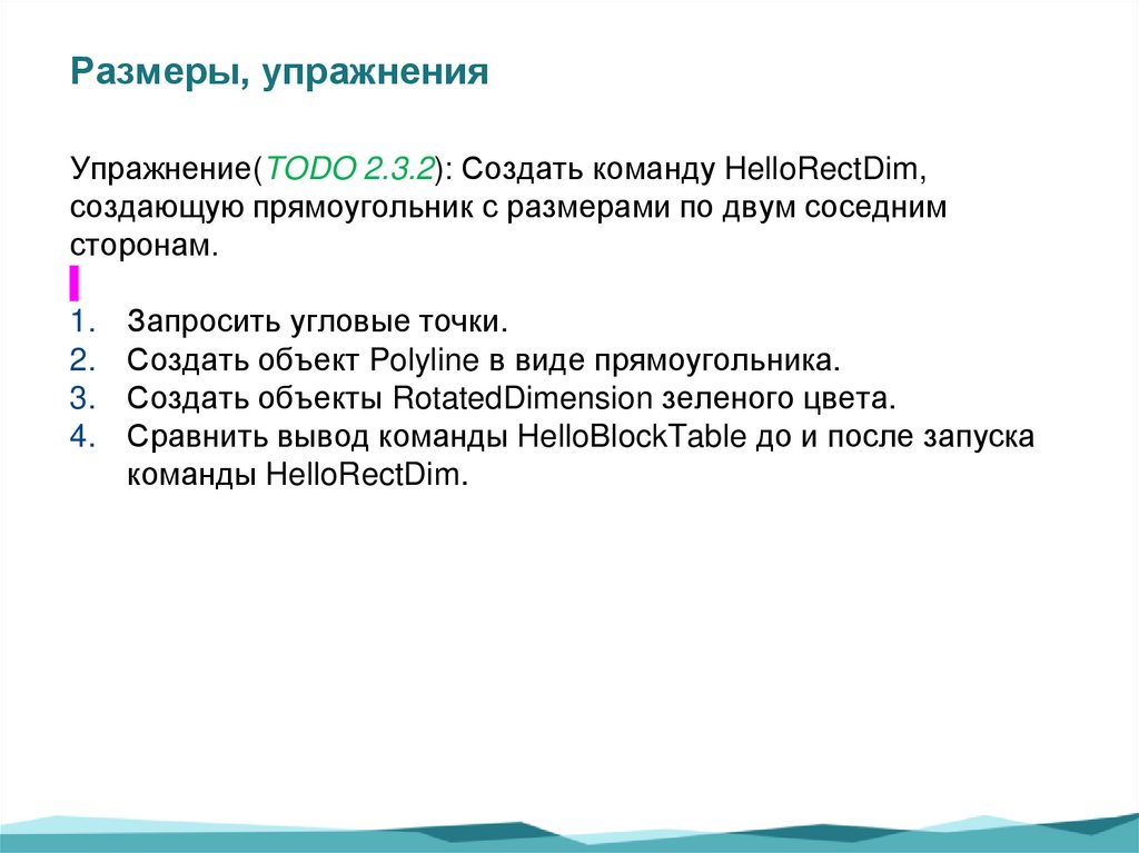 Размеры, упражненияУпражнение(TODO 2.3.2): Создать команду HelloRectDim,