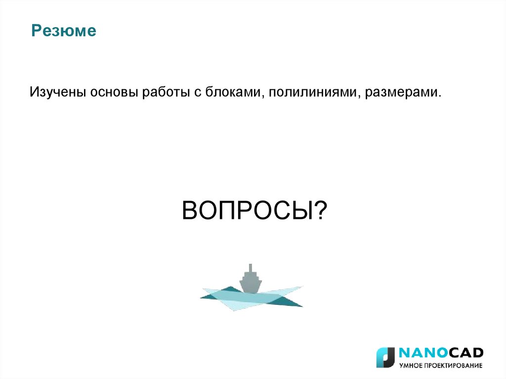 РезюмеИзучены основы работы с блоками, полилиниями, размерами.