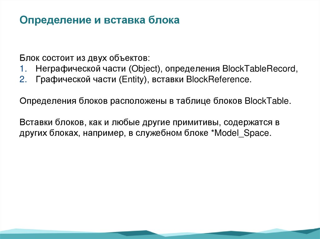 1. Неграфической части (Object), определения BlockTableRecord,