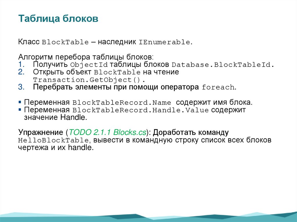 1. Получить ObjectId таблицы блоков Database.BlockTableId.