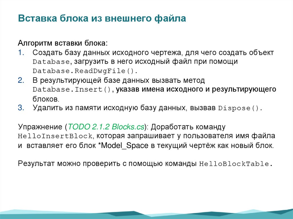 Упражнение (TODO 2.1.2 Blocks.cs): Доработать команду