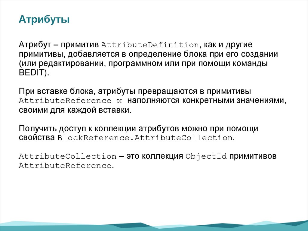 АтрибутыАтрибут – примитив AttributeDefinition, как и другие