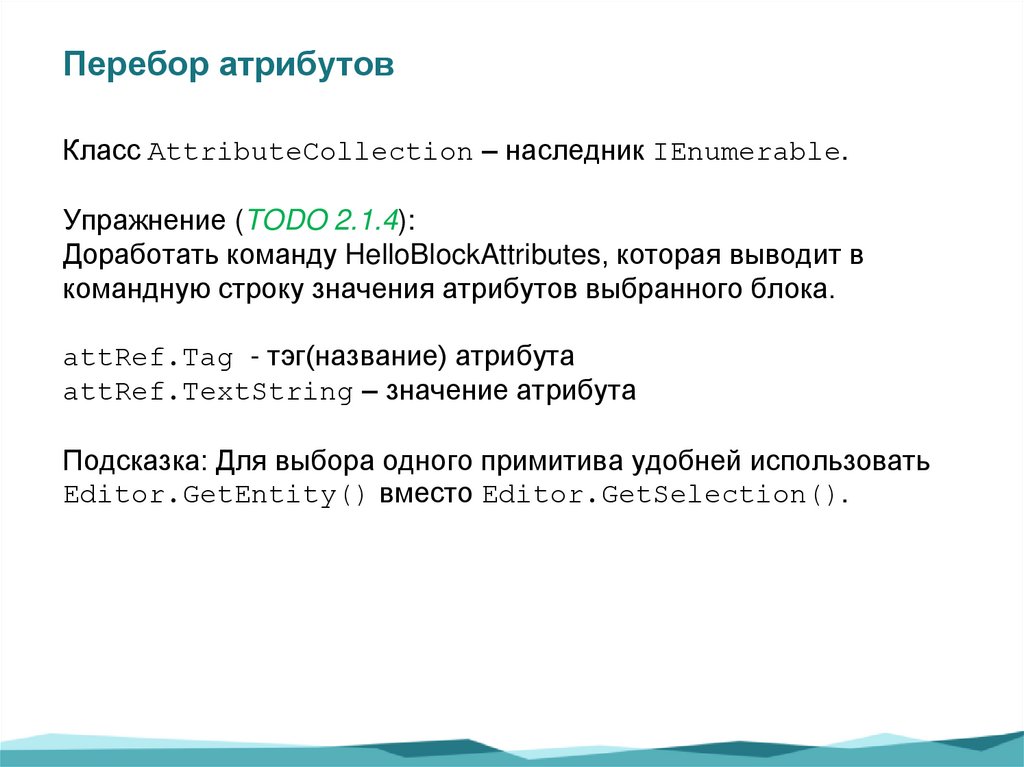 Перебор атрибутовКласс AttributeCollection – наследник IEnumerable.