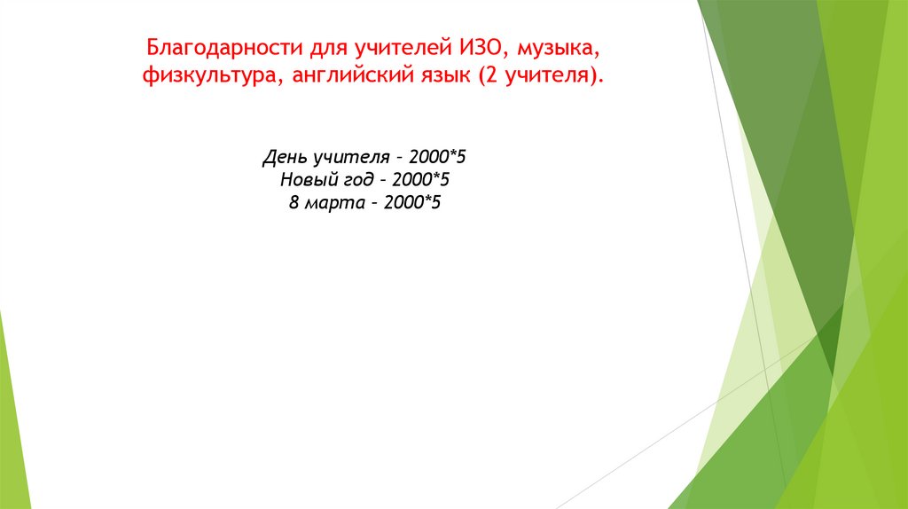 Благодарности для учителей ИЗО, музыка,физкультура, английский язык (2 учителя).