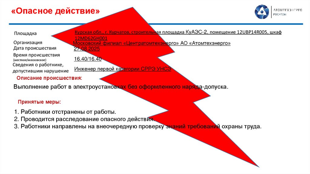 Курская обл., г. Курчатов, строительная площадка КуАЭС-2, помещение 12UBP14R005, шкаф