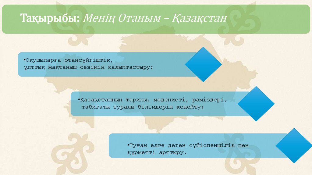 Тақырыбы: Менің Отаным – Қазақстан•Оқушыларға отансүйгіштік,