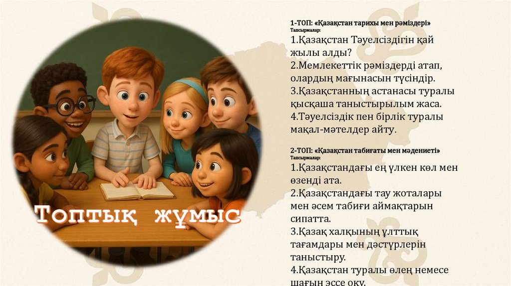 1-ТОП: «Қазақстан тарихы мен рәміздері»Тапсырмалар: