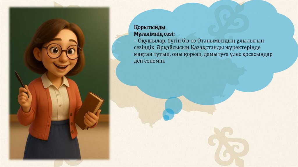 – Оқушылар, бүгін біз өз Отанымыздың ұлылығын