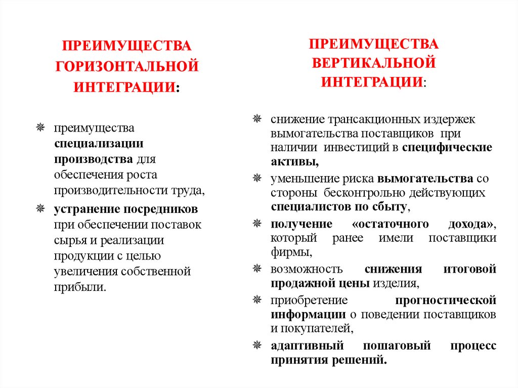 2. Стратегии, построенные на преимуществах кооперации (интегрированного роста) включение в процесс производства дополнительных стадий, рост вдоль производственной