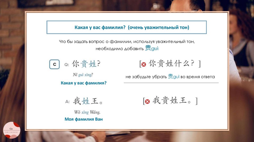 Какая у вас фамилия? (очень уважительный тон)Что бы задать вопрос о фамилии, используя уважительный тон,