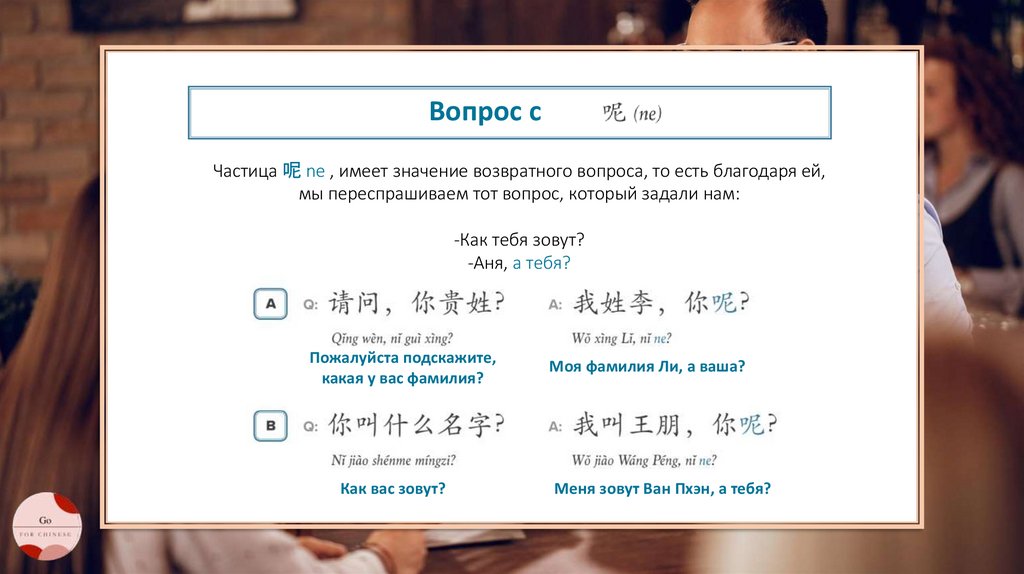 Вопрос сЧастица 呢 ne , имеет значение возвратного вопроса, то есть благодаря ей,