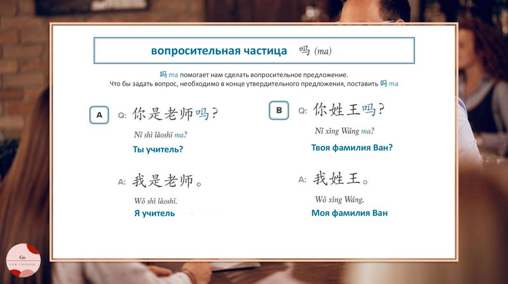 вопросительная частица吗 ma помогает нам сделать вопросительное предложение.