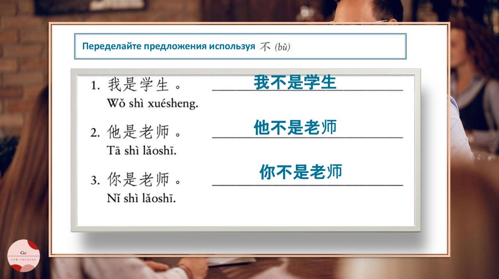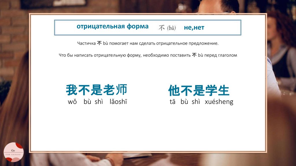 Частичка 不 bù помогает нам сделать отрицательное предложение.