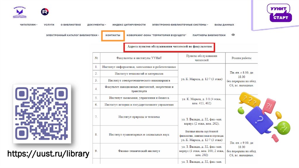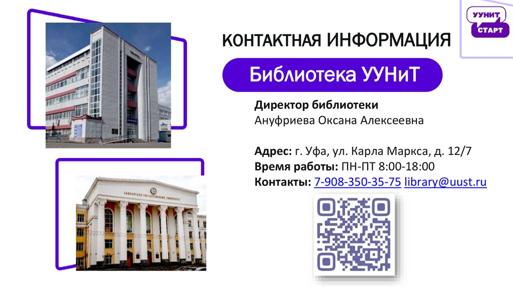 КОНТАКТНАЯ ИНФОРМАЦИЯБиблиотека УУНиТ