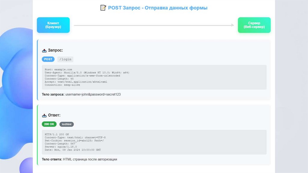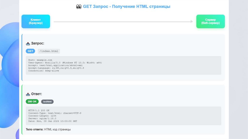 •GET /INDEX.HTML → СЕРВЕРОТПРАВЛЯЕТ HTML