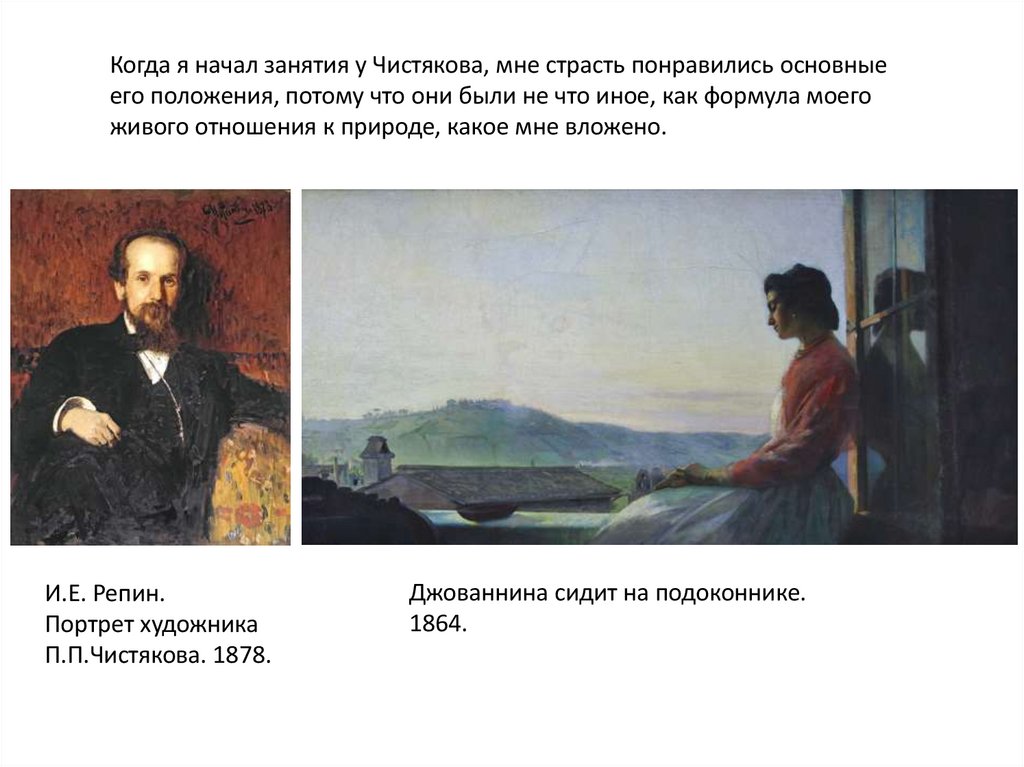 Когда я начал занятия у Чистякова, мне страсть понравились основныеего положения, потому что они были не что иное, как формула моего