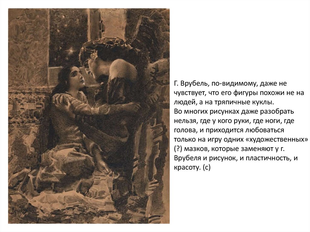 Г. Врубель, по-видимому, даже нечувствует, что его фигуры похожи не на