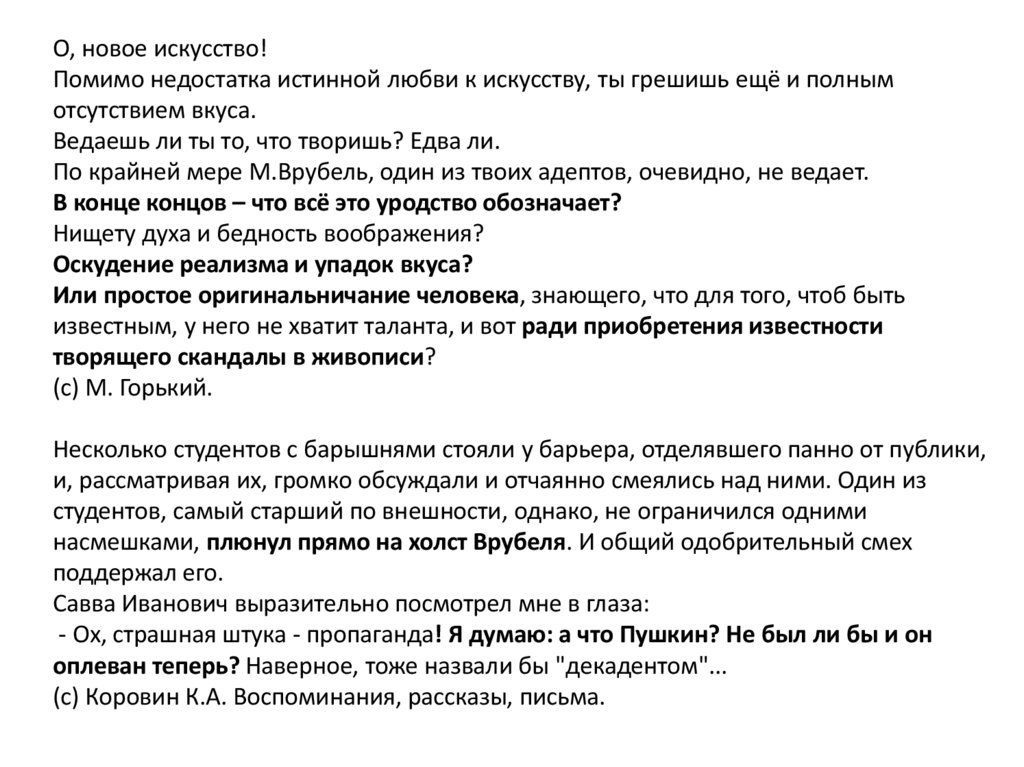 О, новое искусство!Помимо недостатка истинной любви к искусству, ты грешишь ещё и полным