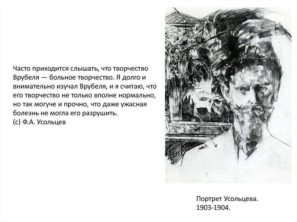 Часто приходится слышать, что творчествоВрубеля — больное творчество. Я долго и