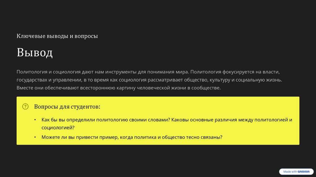 государствах и управлении, в то время как социология рассматривает общество, культуру и социальную жизнь.
