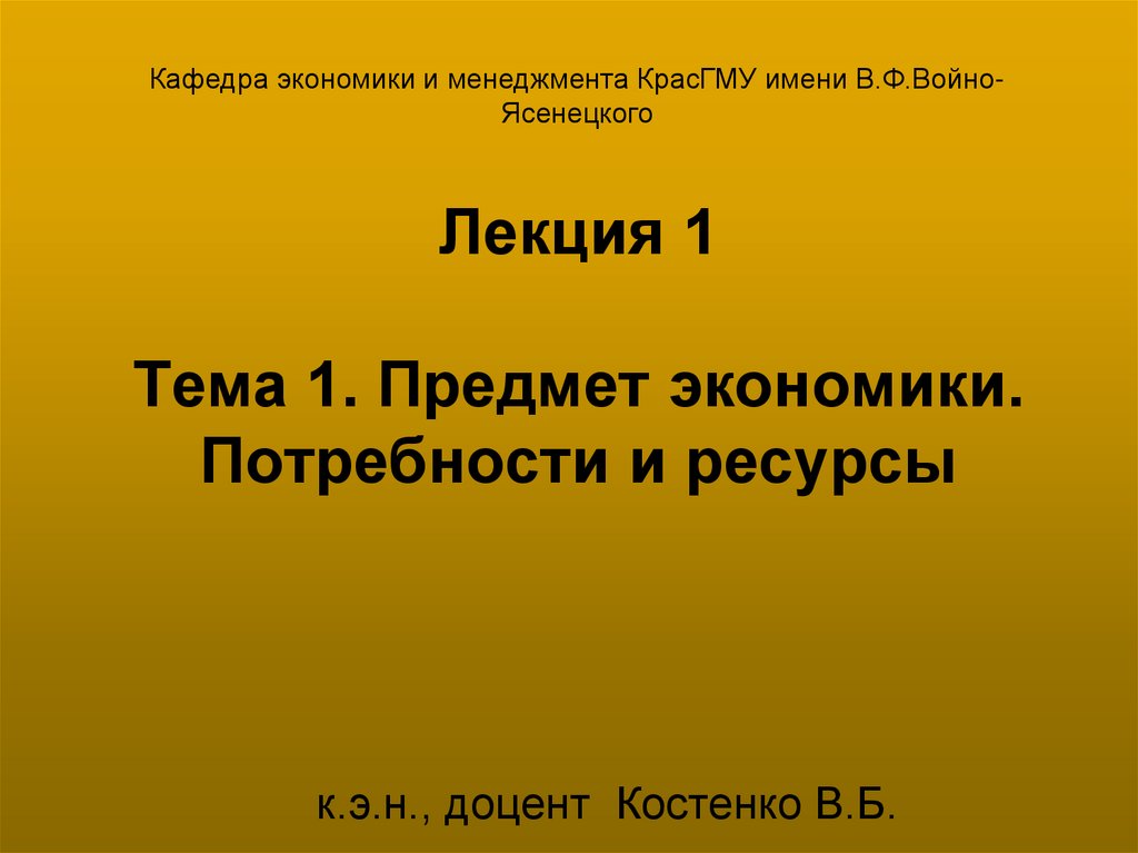 1. Лекция 1 Тема 1. Предмет экономики. Потребности и ресурсы