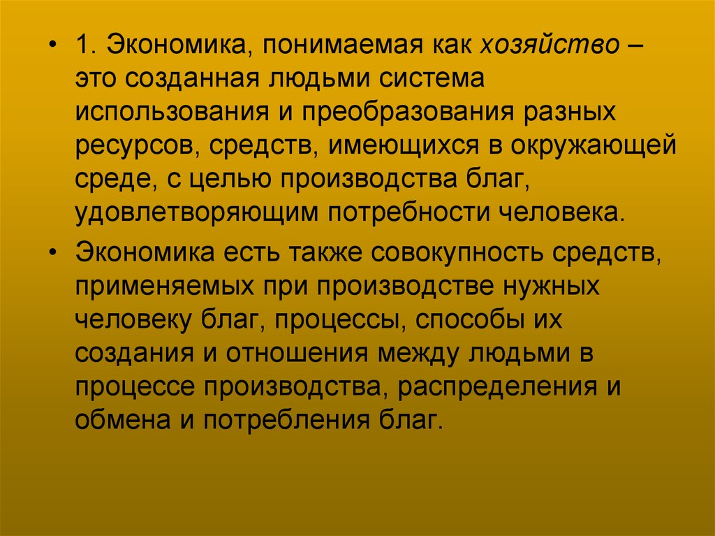 • 1. Экономика, понимаемая как хозяйство –это созданная людьми система