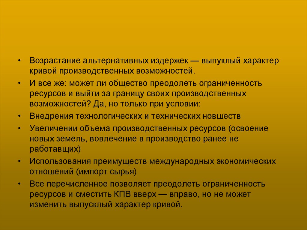 • Возрастание альтернативных издержек носитуниверсальный характер и иногда