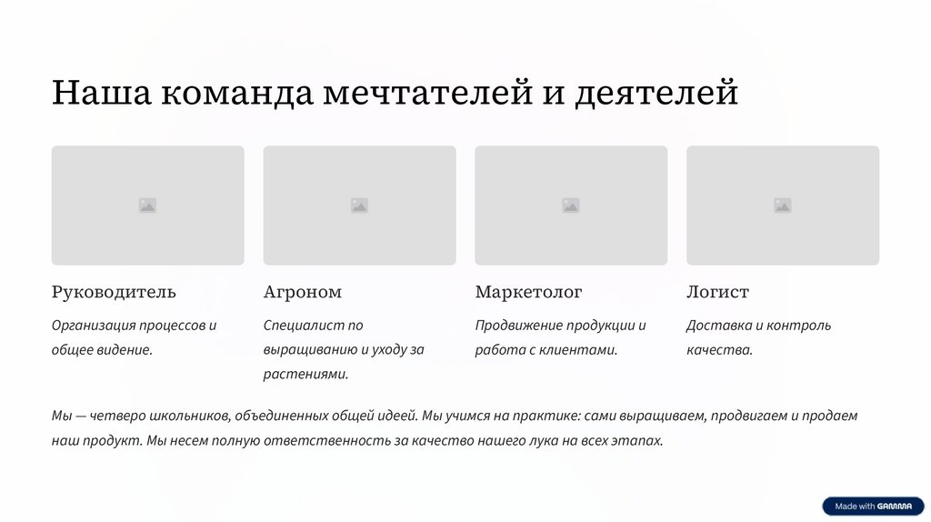 Мы — четверо школьников, объединенных общей идеей. Мы учимся на практике: сами выращиваем, продвигаем и продаем