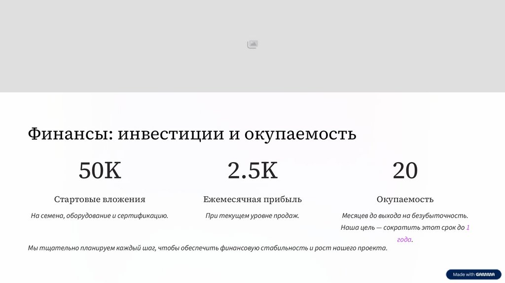Мы тщательно планируем каждый шаг, чтобы обеспечить финансовую стабильность и рост нашего проекта.