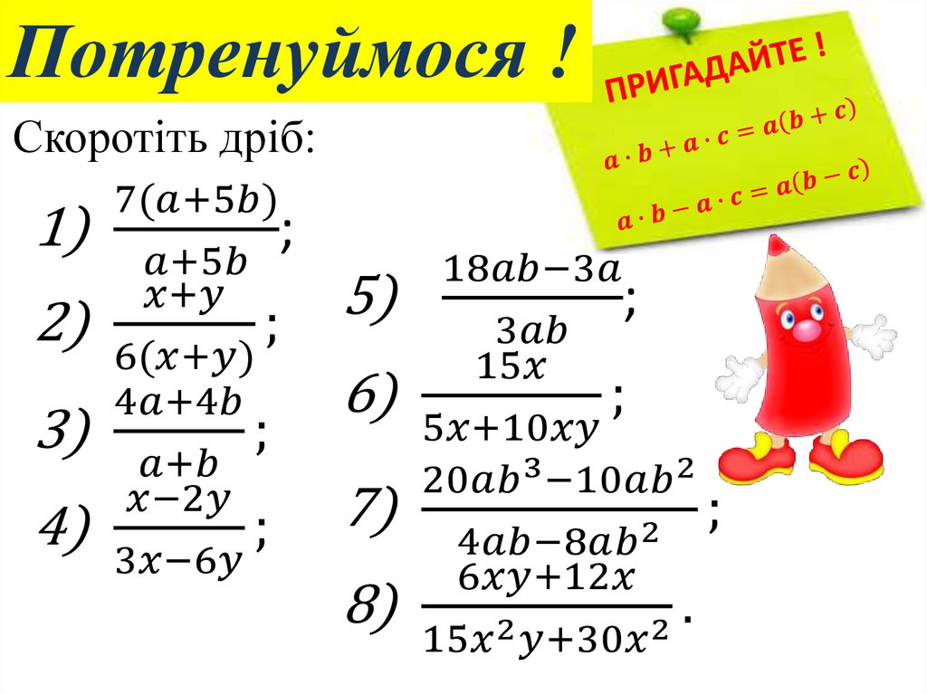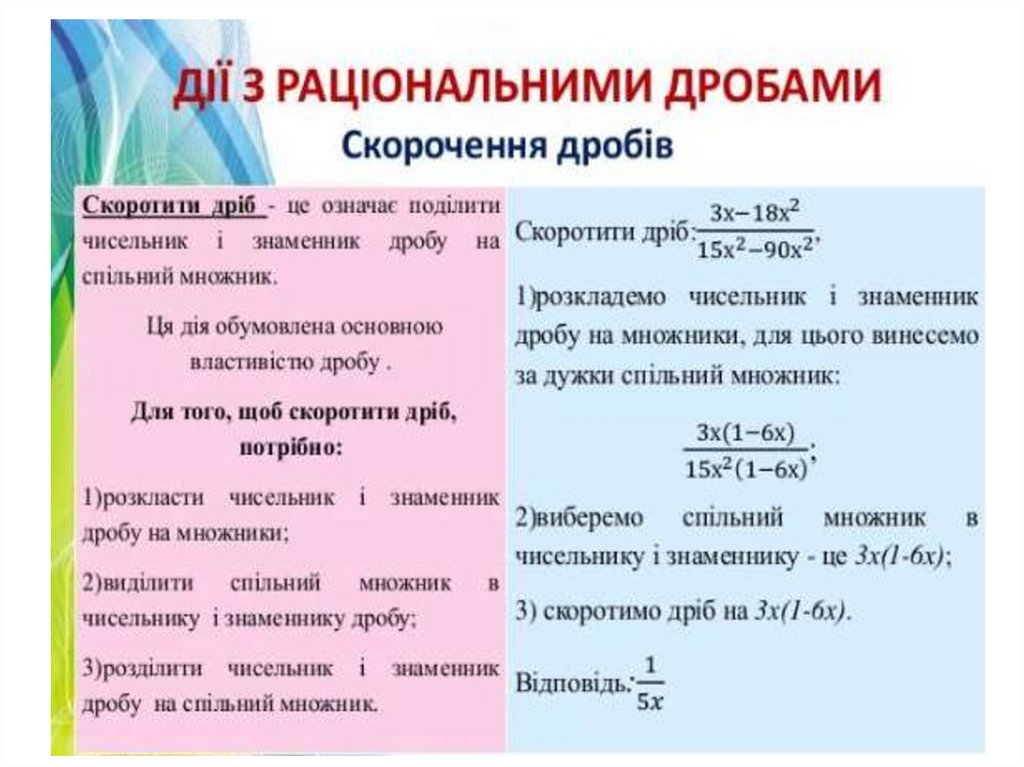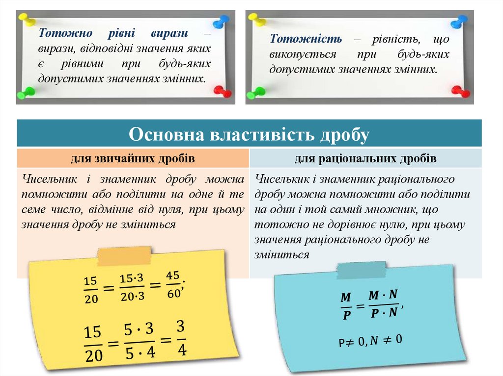 Основна властивість раціонального дробу. Скорочення дробів