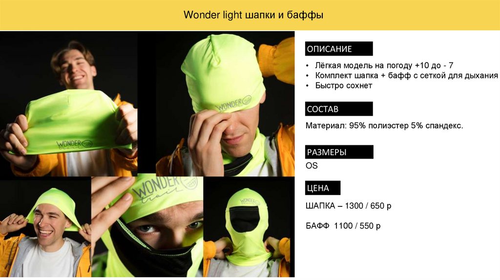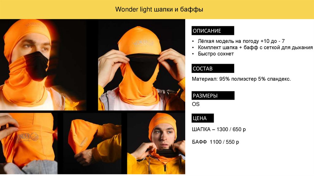 Wonder light шапки и баффыФУНКЦИОАЛ: