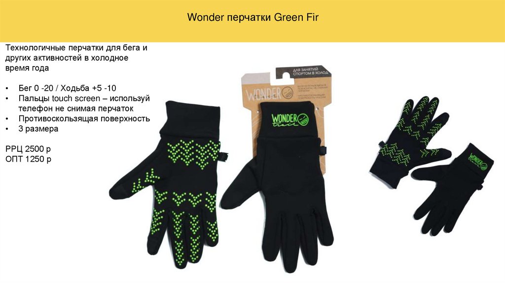 Wonder перчатки Green FirТехнологичные перчатки для бега и