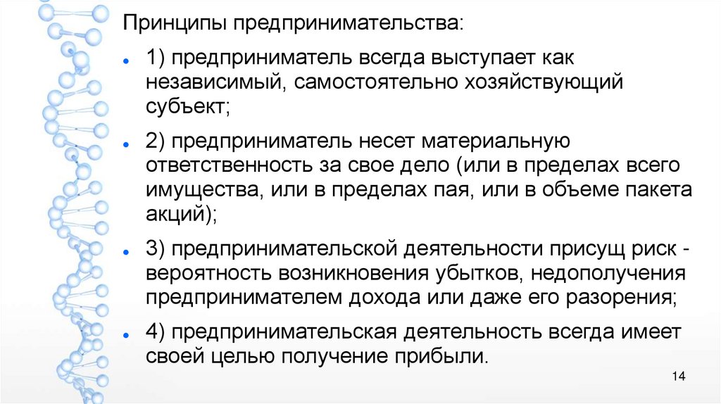 Принципы предпринимательства:1) предприниматель всегда выступает как