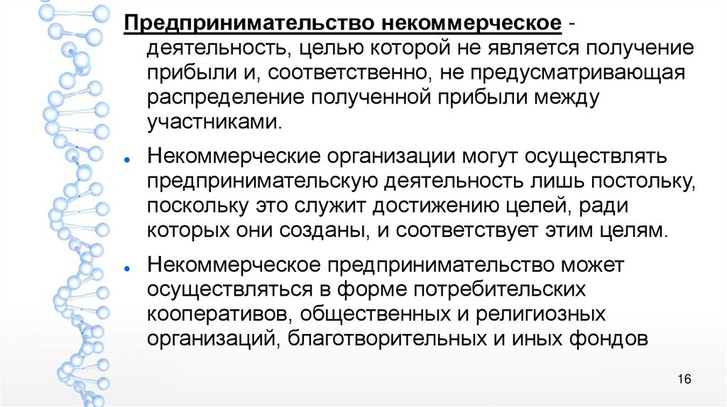 Предпринимательство некоммерческое деятельность, целью которой не является получениеприбыли и, соответственно, не предусматривающая