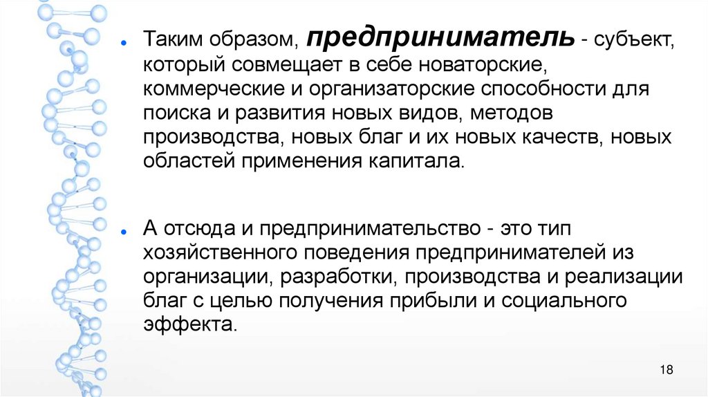 Таким образом, предприниматель - субъект,который совмещает в себе новаторские,