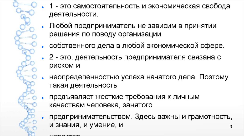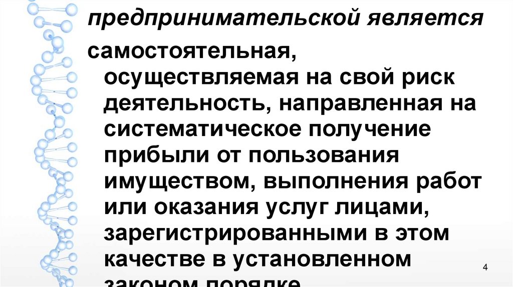 3) предпринимательской деятельности присущ риск вероятность возникновения убытков, недополучения